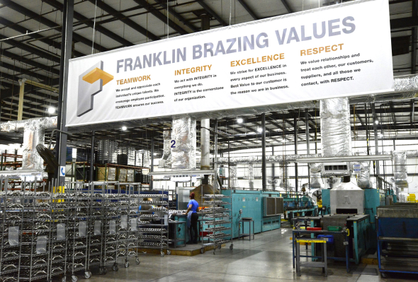With advancements in technology and materials science, hydrogen atmosphere brazing has evolved to address specific industry requirements and challenges. From vacuum brazing to controlled atmosphere furnaces, manufacturers have access to a variety of brazing methods tailored to their applications, each optimized to harness the benefits of hydrogen while minimizing its potential drawbacks. At Franklin Brazing, we employ a controlled atmosphere continuous belt furnace to achieve flawless brazing.